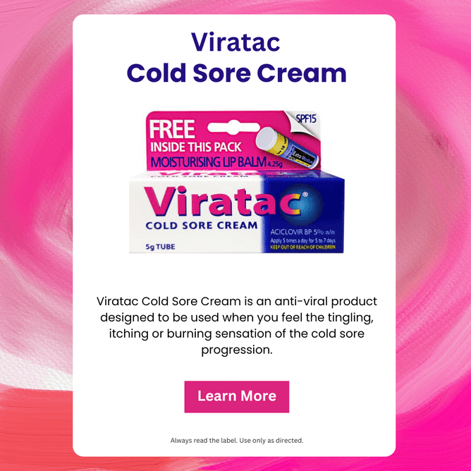 Cold sores need not be a hindrance to your daily life or summer plans. With Viratac Cold Sore Cream as your ally, you have a powerful tool to combat these unwelcome visitors swiftly and effectively. Find out more about Cold Sores here.