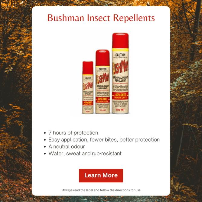 Bushman Benefits: Water, Sweat, Rub Resistant.