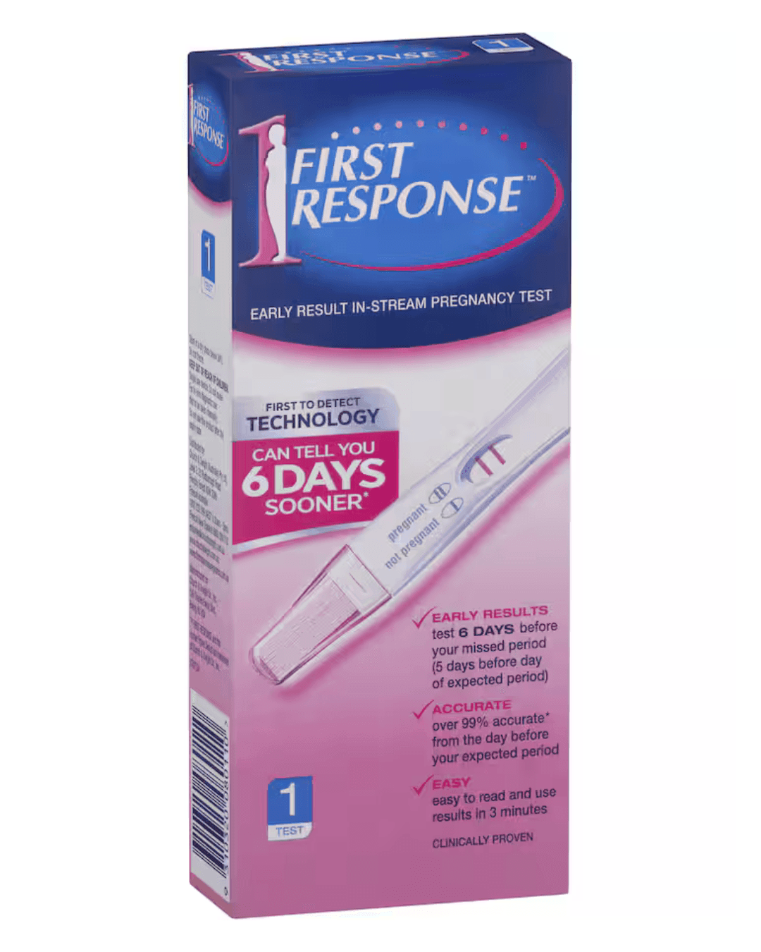 The First Response Pregnancy Test is simple and fast to use and delivers quick results on the day of the missed period or later.